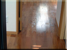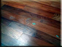 が、補修された床は見るもむざんな形になっていました。通常、傷がついた床についてはその傷を中心に広範囲にわたってペーパーで削ります。その後、再度ワックスなどを塗って仕上げるのです。