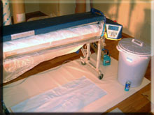 クロス貼りマシーン 糊付けと好みのサイズへのカットが可能! |