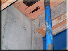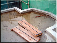 | 昨日の大雨で雨漏りしてる!! | なんと屋上が水溜りに…。 |