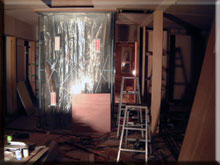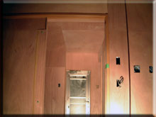 | 洗面所の部分も木が入りました | 色々と部屋が出来てますます存在感が…。 |