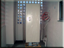 さて、現場のほうですがお風呂場がほぼ完成しました。理想どおり?の出来上がりです。あと、待望?の電気温水器とIHクッキングヒータも入りました。だけど、壁のペンキが塗られていないのに取り付けるのかなぁ….。心配。