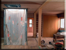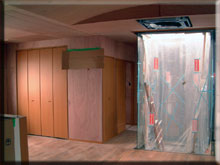 階段を上がったところの壁を見てみたんだけど、ここも既設部分についてはなんの掃除も行わずそのままペンキを塗った後があります。おいおい、これは手抜きじゃないのか??せっかくここまで色々な問題が発生しながらも進んできたのに、ここで手抜きが見つかるとは…..。rikiはこのことをきちんと設計のSさん経由で確認するし、仮に手抜きだとした場合にはどんなことを言ってきても、やり直してもらうつもりです。納期が遅れようがそんなことは関係なく…。それが終わるまでは受け取らないつもりです。