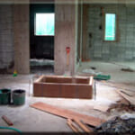 いよいよホームシアターの部屋の作業を行うのかとどきどきしていたんだけど、夕方見に行くと中庭の床らしきものが出来ていました。
