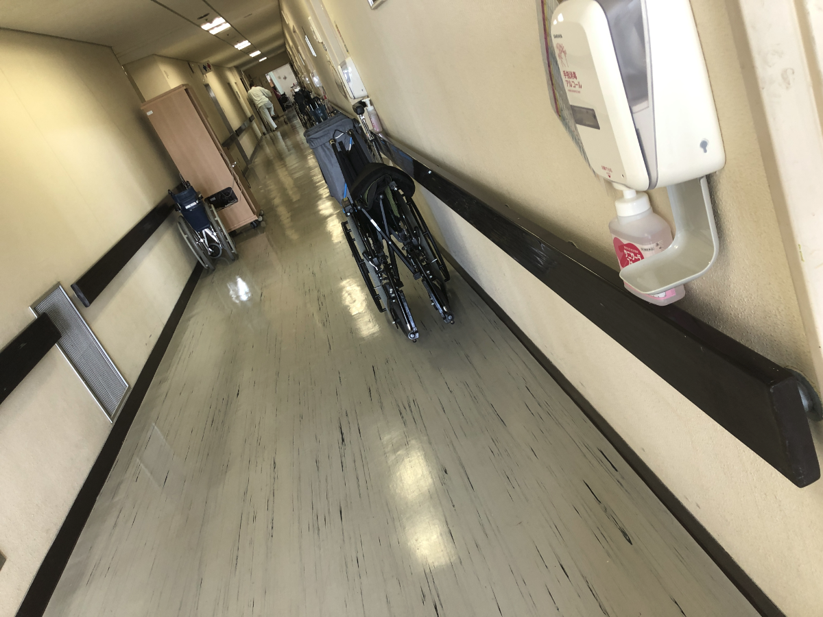 しばらくすると、「rikiさん、お久しぶりです。元気ですか?」と足のリハビリ担当のMさんがやってきました。今日から病棟の中でリハビリができるようになったので早速リハビリしましょうね。と…準備を始めました。「歩行器を離れて自分で歩けるようになるためのリハビリを行います。」といって、病室の外の廊下に連れて行ってくれました。「今は、歩行器にもたれて歩いていると思いますが、腕を置く端っこをもってなるべく自分の力で歩くことを意識して歩いてみましょう。廊下を一周してみましょうね」と早速リハビリが…。